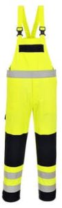 This multi-norm Bib and Brace is constructed with the same highly innovative fabric. This comfortable garment offers protection against multiple risks. Features include twin-stitched Hi-Vis strips on the legs and waist, front brass zip and two front patch pockets, a chest pocket with flap, a back pocket with flap and a lower tool pocket with flap.